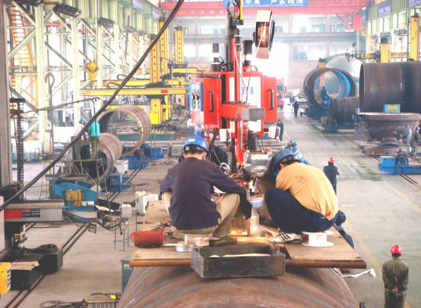 ● 2套(3套)四絲內焊:預焊之后,在鋼管內部進行4絲埋弧焊接。