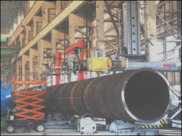 ● 2套(3套)四絲或五絲外焊:內焊之后,在鋼管外部進行(4絲或5絲)埋弧焊接。